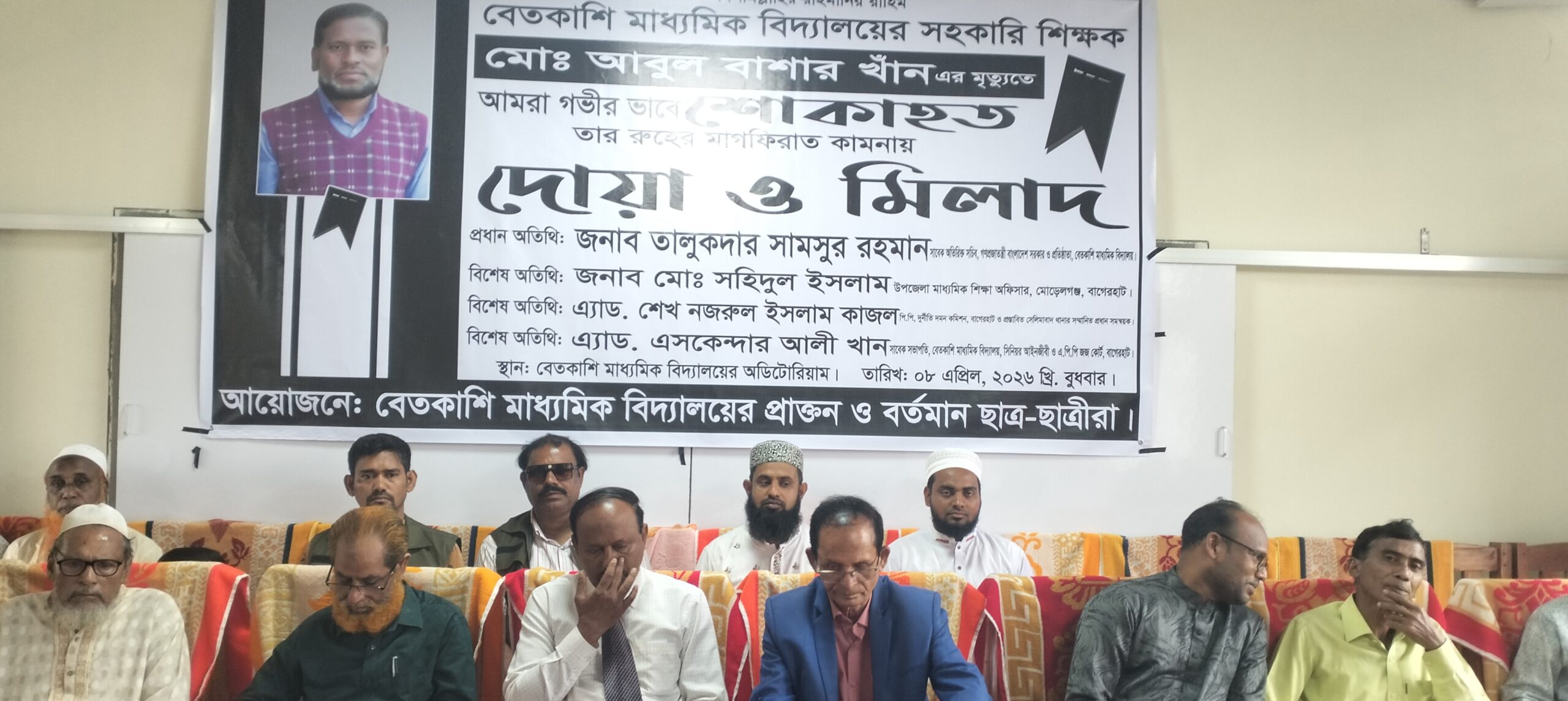 বেতকাশি মাধ্যমিক বিদ্যালয়ের সহকারী শিক্ষক আবুল বাশার খান এর মৃত্যুতে দোয়া ও মিলাদ